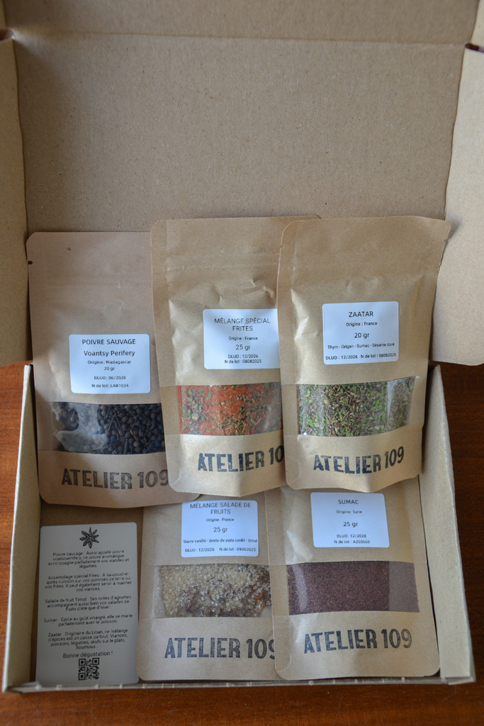Explorez notre collection de coffrets, parfaits pour offrir et découvrir de nouvelles saveurs. Chaque coffret est soigneusement composé et amballé pour vous offrir un assortiment d'épices savoureuses. Que vous soyez amateur de cuisine du monde ou à la recherche d'un cadeau original, nos coffrets sont une solution pratique et gourmande.